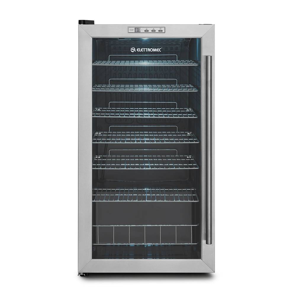 O Frigobar de 88 litros gourmet possui um sofisticado acabamento preto no interior, prateleiras cromadas, porta de vidro com bordas em inox e capacidade de armazenar até 88 litros. Além de oferecer comodidade para o usuário, se adapta a qualquer ambiente, servindo como objeto de decoração. * A Elettromec também disponibiliza uma adega, com capacidade de 28 garrafas e na mesma dimensão do frigobar, para que ambos possam ser utilizados juntos.