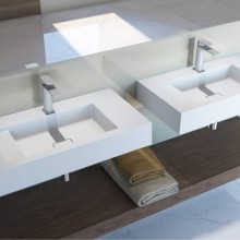 Linhas firmes e amplas tornam o Lavatório Rodes uma peça envolvente. Seus traços expressivos contrastam com o design clean proporcionado pelo Duramatt. Funcional, possui dois níveis de apoio para comportar diversos objetos ou acessórios de higiene, dispensando o uso da bancada.
