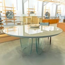 O acabamento brilhante da mesa de jantar Glacial acrescenta um toque de glamour a qualquer espaço de jantar, elevando instantaneamente o ambiente e fazendo uma declaração marcante. A base desta mesa é uma obra de arte em si, habilmente trabalhada em vidro premium. O seu design transparente cria uma ilusão de flutuação, acrescentando um toque moderno e etéreo à sua área de jantar.