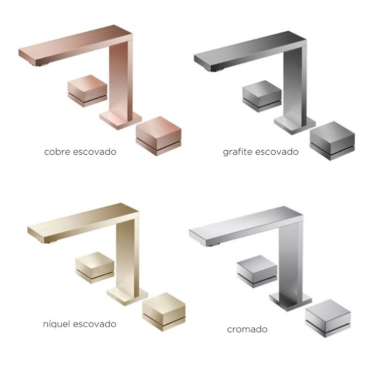 Para quem procura um produto sem excessos, o misturador de bica baixa da linha Mínima é ideal. Inspirada nos mínimos detalhes da arquitetura, essa peça garante simplicidade ao ambiente. A bica baixa da Mínima é indicada para cubas embutidas ou com parte da louça encaixada na bancada. Esse tipo de produto evita respingos durante o uso, pois com a presença do arejador embutido na bica é possível misturar o ar e a água, proporcionando maior segurança e conforto ao lavar as mãos. Nos produtos para banheiro com duplo comando é possível controlar a saída de água quente e fria em duas alavancas. Em comparação aos misturadores monocomando, com um único volante, o duplo comando proporciona controle ao acionar a água.