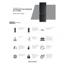 O Refrigerador Vetro Bottom Frrezer 360 litros Elettromec possui um design moderno com vidro flat preto, dando mais sofisticação para as cozinhas gourmet. -Possui Alinhamento perfeito com nicho padrão de 60 cm de profundidade; -Possui capacidade total de 317 litros, sendo 222 litros no refrigerador e 95 litros no freezer; -Para evitar o acúmulo de gelo possui uma refrigeração “No Frost”; sua Porta é reversível, com possibilidade de inverter para side by side, permitindo maior flexibilidade e adequação em diversos projetos; -Possui também um Painel moderno com comando touch e display digital externo em LED, para maior facilidade no manuseio e na programação; -Além da Função Super Freezing, que garante uma refrigeração rápida de bebidas e alimentos, conservando-os com maior qualidade e por mais tempo; -Tem a Função Holiday: programada antes de viagens para que o refrigerador funcione com menor consumo de energia. Este produto possui certificado pelo INMETRO para funcionamento com as condições de temperatura e energia do Brasil, com classificação A, maior desempenho e menor consumo.