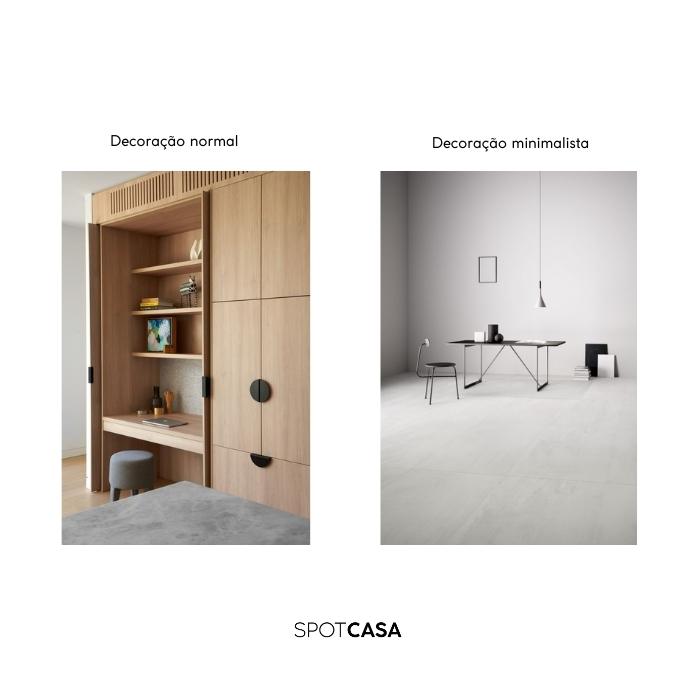 Como citamos, o estilo minimalista busca valorizar e tirar o máximo de cada peça para que não precisemos saturar o ambiente com excesso de elementos desnecessários. Neste estilo só aquilo que é necessário é permitido. No exemplo abaixo, temos a comparação de dois ambientes com a mesma finalidade, ambos bonitos e decorados, mas repare a diferença no volume de informações:
